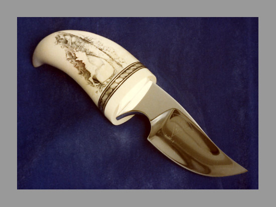 ‘1 of 1’ scrimshawed sperm whale’s tooth hunter with elephant ivory guard and silver collar