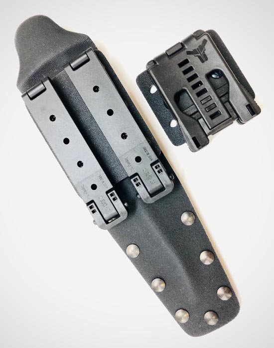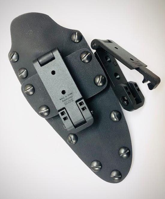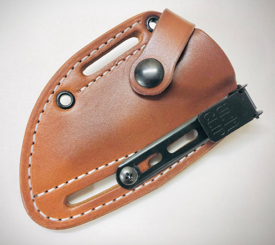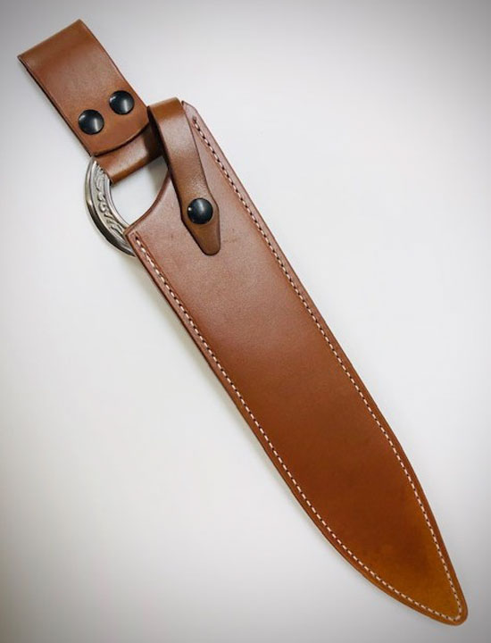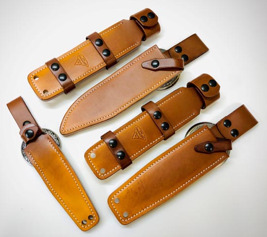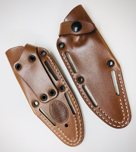 Jim Hammond leather sheaths are designed on CAD and individually crafted by hand from the finest Belgian leather. Meticulously stitched, they feature heavy duty TRW hard-socket snaps and are specially waterproofed with an oil/wax mixture then heat-sealed with an acrylic Resolene coating. These sheath designs have been in service with special operations personnel since 1981 and are as much a trademark as the knives they carry. From hunting knife to military knife, each Jim Hammond leather sheath is designed as an integral part of the system to meet the needs of sportsmen and operators alike.